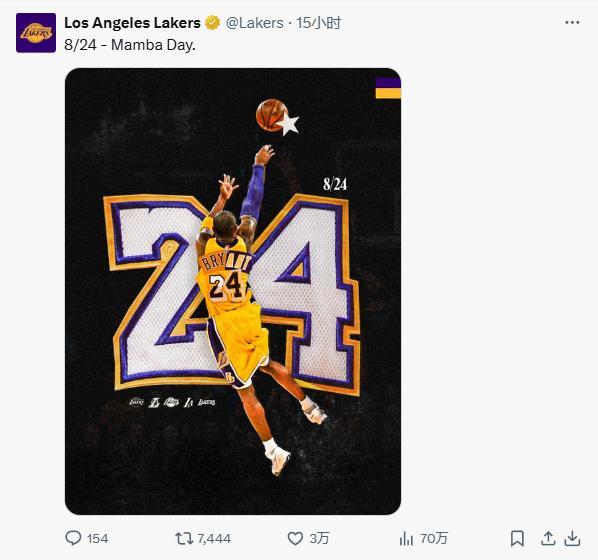 yl23455永利官网-永远的紫金传奇!湖人官方连发15条推文庆祝科比生日&曼巴日!